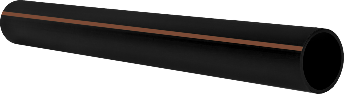 HDPE pipes PE100 black with 4 co-extruded brown lines for water distribution and transportation, according to EN 12201-2, ISO 442, for network installed underground. The pipes are produced respecting the requirements of ISO 9001:2008, ISO 14001:2004 and Product Compliance Certificate issued by Bureau Veritas (BVQI) No. 672/002, third party certification body accredited according to the norm UNI CEI EN 45011 and 45004. Diameters: 20 ÷ 1200 mm.