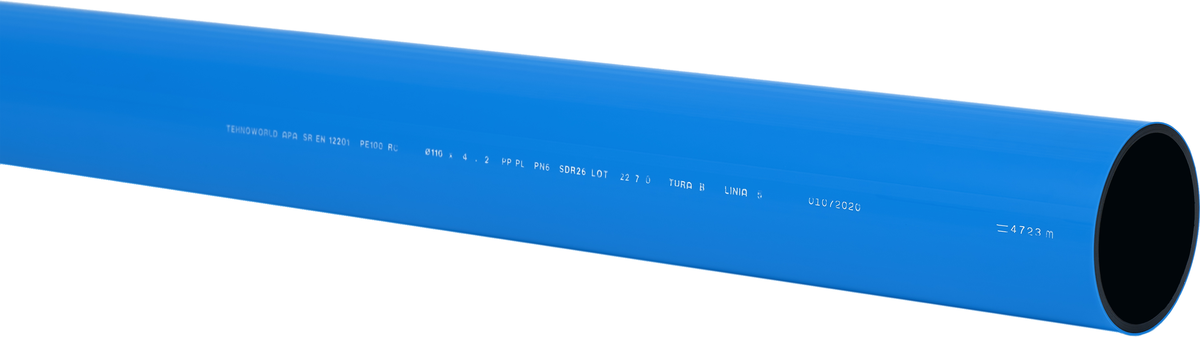 Additionally, polyethylene pipes with PP peelable protective coating are also used for raw water transport networks before the treat-ment process, in hydrant fire extinguishing systems, as well as in pipeline systems for industrial applications. The pipes are produced according to the norms: EN 12201 - 2 : 2011 + A1 : 2013, ISO 4427 EN ISO 15494 and are approved in Romania according to the current norms. Diameters: 63 ÷ 1200 mm.