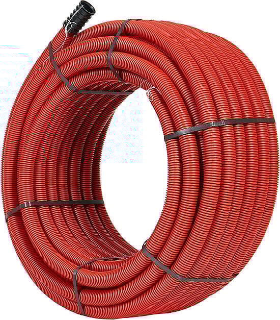 We produce corrugated double-walled high density pipe (HDPE) ELCOR 450N for electric cable protection and underground telecommunication networks, with exterior diameters from 40mm to 200mm. The pipes are produced according to SR EN 61386-1 and ENEL DS 4247 RO norms with red exterior wall and black interior wall.