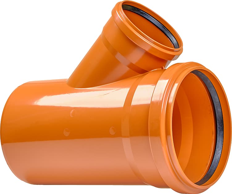 PVC-U fittings for sewer networks with diameters between 110 ÷ 630mm. Types: Elbow 150 / 870; 450 ramification with reduction; 870 ramification with reduction; Repair coupler; Double coupler; Eccentric reduction; End cap; End plug.