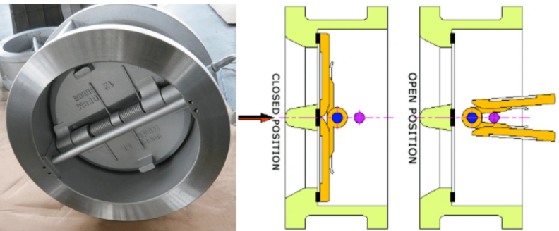 Each of these has a unique way in which they operate; the butterfly check valve has two folding disks that move towards a centreline with the forward flow and close with reverse flow.