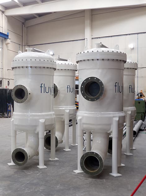 Fluytec’s FRP/GRP (Fiberglass Reinforced Polyester) Cartridge Filters are engineered to operate in heavy duty applications, providing superb filtration efficiency and durability. The FTP series are available in two configurations: Single Flange (SFL) allows individual cartridge replacement inside the housing and Sword System (B) allows for complete filtering package removal outside the housing. Fluytec FTP Housings are offered according to the most relevant International Codes: Ad-Merkblatt or ASME X for