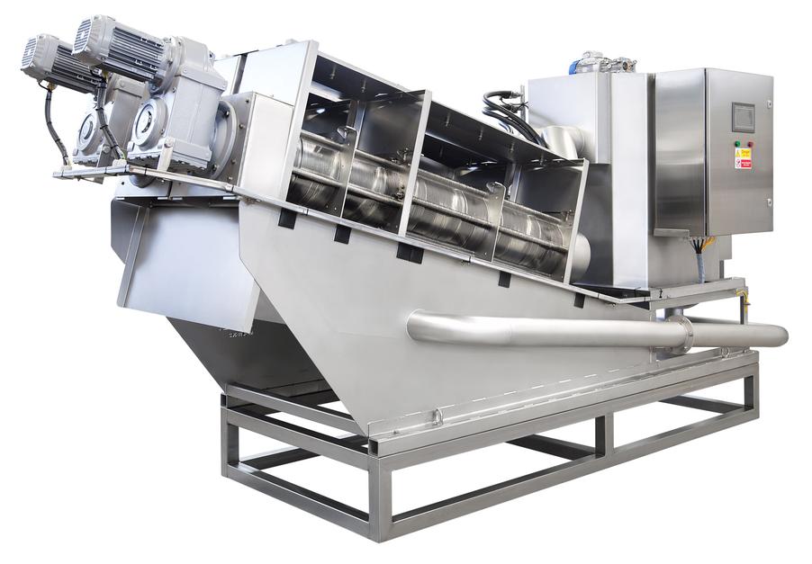 Dewatering screw press is used for efficient thickening and dewatering of sludge waters. Sludge waters are water, containing certain amount of suspended solids, these can be product of waste water treatment, food proccessing industry, chemical industry and other branches of human activity. Our dewatering screw press, which serves to thicken sludge water to 20% dry-matter content on municipal sludges and more for mineral/industrial sludges.