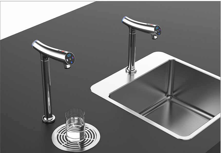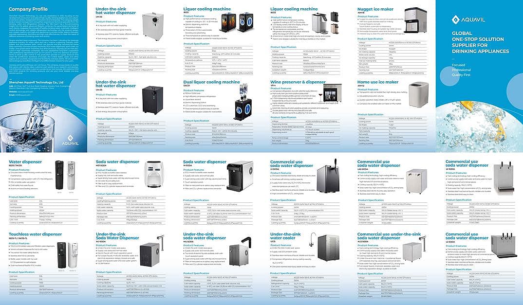 1. Supply cold water from SS pipe and soda water from cold tank, UV lamp sterilization for cold, soda and ambient water, meet EU drinking water hygiene requirements. 2. Elegant, high end, new design of electrical faucet, touch operation panel, easy to use. 3. Copper faucet body, multi-color available, water and electricity separation design, durable and safe. 4. Super strong soda water taste, and reliable cold water system. 5. Cooling power: 100W, 3L/H < 10 degrees, 6. Heating power: 1000W